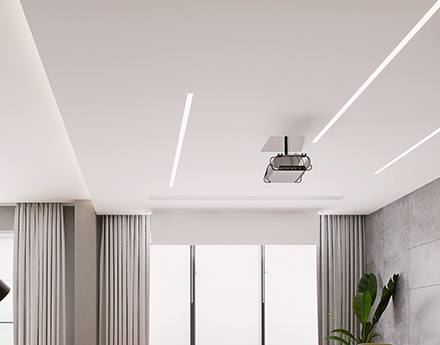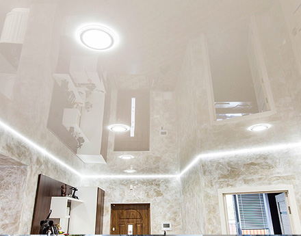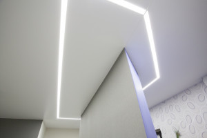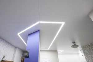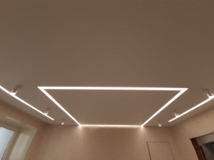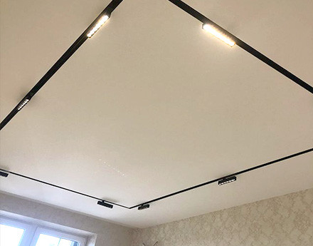 - освещение играет важную роль. Чтобы его установка была включена в цену, закажите ее у нашего замерщика. С ним согласуете температуру и мощность ламп, их расположение на потолке, чтобы во время монтажа сотрудники сделали закладные в нужных местах;