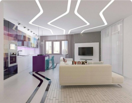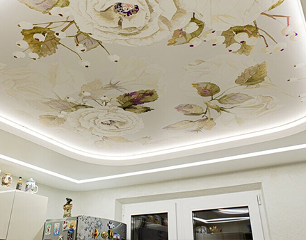 - Выполняем натяжные конструкции любой сложности от базовых одноуровневых в одном или разных цветах, монтаж которых занимает не более часа, до двухуровневых и более с фотопечатью. Время на их установку требуется больше. Цена и результат также отличаются.
