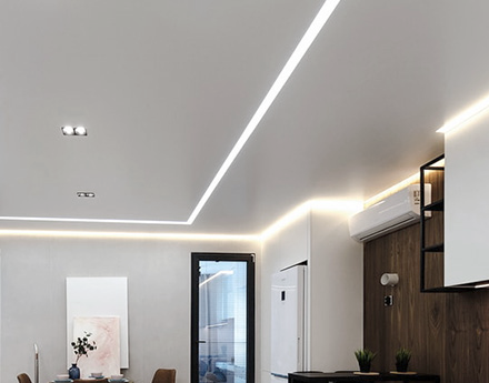Компания Потолки Саратов работает с конструкциями натяжных потолков любой сложности по приемлемым ценам. У нас есть поливинилхлоридные пленки (ПВХ) с выбором фактур (матовой, глянцевой, сатиновой), а также ткань. С большим выбором цветов легко выбрать оттенок, сочетающийся с обстановкой.