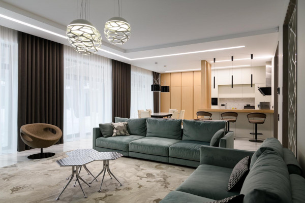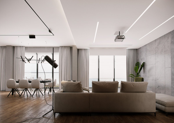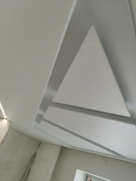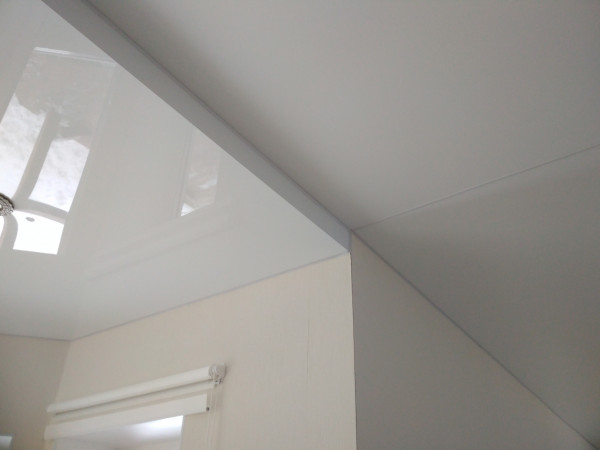 Двухуровневые натяжные потолки способны визуально сделать стены выше, комнату объемней. Они зонируют пространство, делая его логичным, что особенно актуально для квартир-студий, а также совмещенных помещений. Например, столовая и гостиная, спальня и кабинет прихожая и зал можно разделить не стенами и даже не полом, а потолком разного уровня.