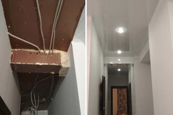 Глянцевые натяжные потолки даже в один уровень способны создать удивительные визуальные эффекты в вашем доме. В зависимости от цвета, глянцевая пленка отражает предметы или только источники света.