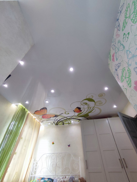 У нас есть морские и лесные пейзажи, голубое небо в облаках или закатном солнце, крыши небоскребов, подводный мир и многое другое. В любое пространство вашего дома получится подобрать подходящий рисунок. Для детской это могут быть ночное небо, любимые малышом сказочные герои, солнце в облаках. Для спальни взрослых — цветы, лес. В прихожей хорошо смотрится городская тематика и оптические иллюзии. Это еще один способ создать трехмерное пространство над головой.