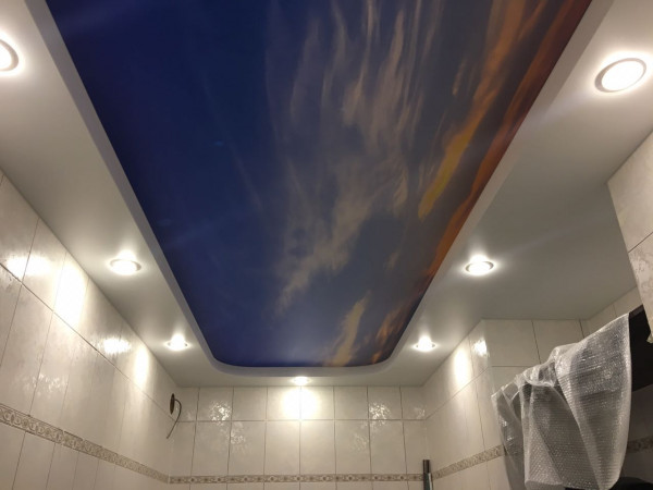 Какой бы вариант вы ни выбрали, на производстве будет один и тот же процесс: полотно запечатывается на широкоформатном принтере полностью, на объект доставляется уже с нанесенной картинкой. Времени на монтаж уходит столько же, сколько и на базовые одноуровневые потолки. Оно увеличится в случае, если вы закажете покрытие со встроенной подсветкой. Самым эффектным способом является размещение световых линий по всей черновой поверхности. В этом случае изображение получает дополнительную глубину и яркость.