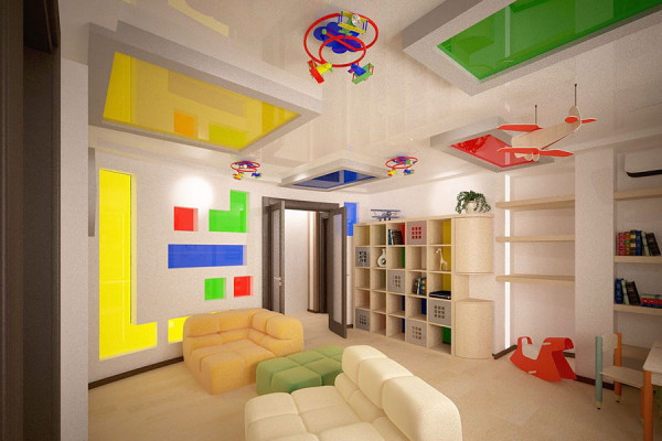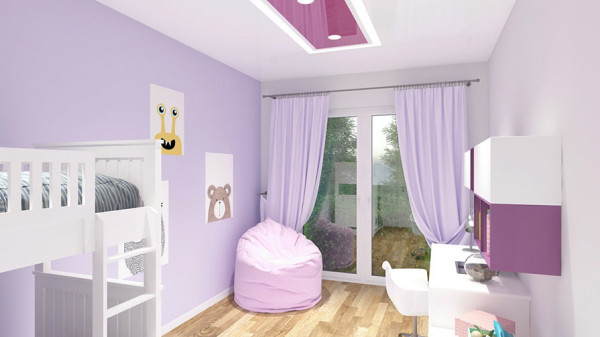 Последняя характеристика имеет особое значение при выборе натяжного потолка в детскую современную комнату. Покупатель может подобрать классический вариант – белое или бежевое полотно, либо отдать предпочтение более оригинальным моделям, выполненным в ярких цветах или даже с интересными рисунками. Если помещение имеет большие размеры, можно в детскую комнату купить потолки натяжные с 3д изображениями на различную тематику.