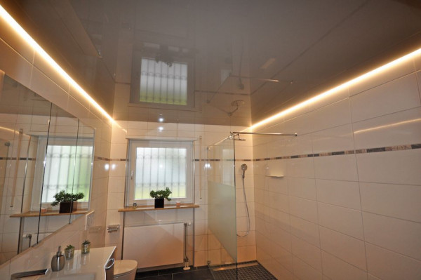 Отделка в ванной комнате требует внимательного выбора материалов. Натяжной потолок в ванной оптимально отвечают всем требованием данного типа помещений – он не боится влаги и перепадов температур. Кроме того, такие отделочные материалы не требуют специального ухода – в ходе проведения уборки достаточно протереть полотно мягкой салфеткой. Еще одно важное преимущество заключается в том, что натяжные потолки в ванной в Саратове способны защитить помещение от затопления соседями, что особенно актуально для ванной. Используемые материалы способны выдерживать нагрузку до 100 л/м2.